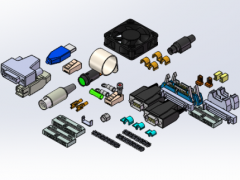 一套电气用接插件三维图(插头、网线、端子、风扇、线夹等三维图)